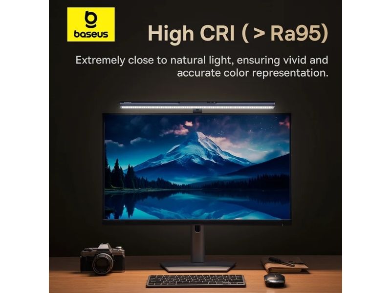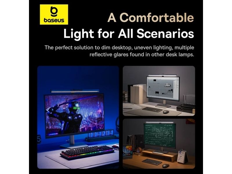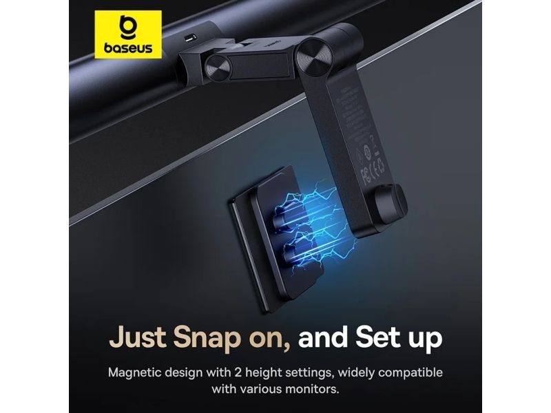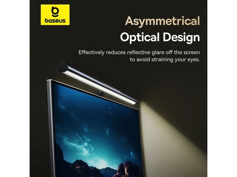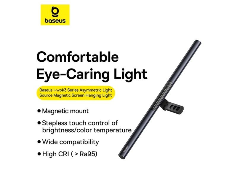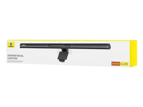 Baseus i-wok 3 Series Asymmetric Light Source Magnetic Screen Hanging Light. Housing colour: Black, Housing material: Aluminium, Luminous flux: 250 lm. Power source: USB, DC voltage: 5 V, Current: 1 A. Width: 485 mm, Depth: 21 mm, Height: 130 mm. Package type: Box
