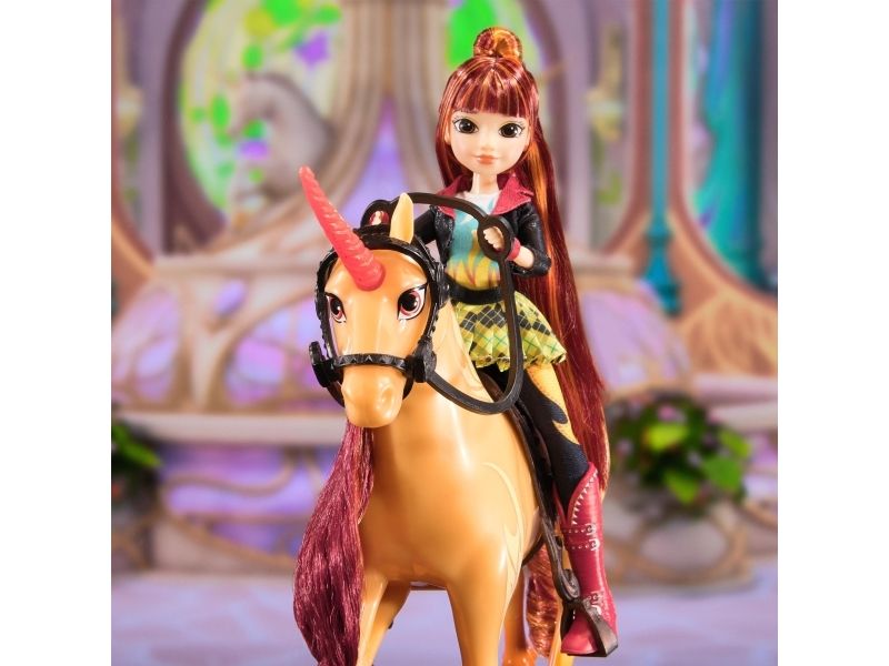 Complete your Unicorn Academy doll collection with Valentina’s unicorn, Cinder. Inspired by the NETFLIX animated show and best-selling book series where friendship reins, this 11-inch unicorn toy brings fiery Cinder to life. Beautifully detailed, Cinder features a pearlized body, yellow Fire Magic markings on his side, a majestic glittery horn, colorful mane and tail, and removable bridle and saddle doll accessories for added play. Gently move Cinder’s head to bring out his personality and relive the magical bonding experience between unicorn and rider with Valentina. Brush Cinder’s soft mane and tail with Valentina’s styling tool (not included, sold separately with doll) and ride into adventure to protect Unicorn Island and its magic. For more ways to experience Unicorn Academy with your favorite characters, look for all of the rider dolls and their unicorns (each sold separately) and expand your world. The magical bonds between Unicorn Academy students and their unicorns will spark endless imaginative storytelling. For kids who enjoy unicorns and horse toys, dolls & accessories, doll house play, collectibles, plush toys and more, Unicorn Academy toys are fun birthday gifts for girls or gifts for any occasion. Bring home the magic of Unicorn Academy with Cinder.