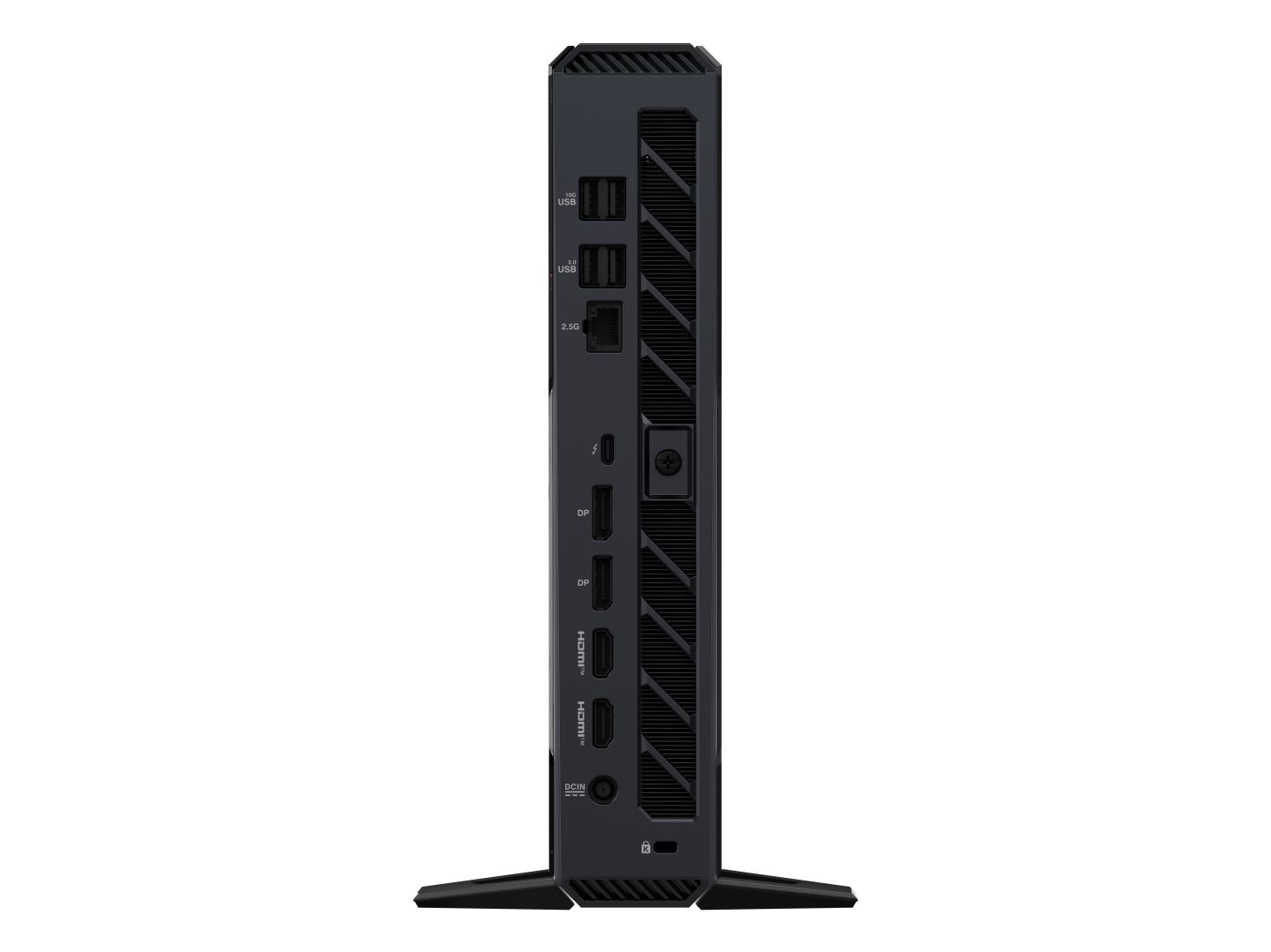 6 x USB 3.2 Gen 2 (2 foran, 4 bak) 1 x lydinnlinje/hodetelefon/mikrofon (1 front) 1 x Thunderbolt 4/USB4/DisplayPort (1 bak) 1 x USB-C 3.2 Gen 2x2 (1 front) 2 x HDMI (2 bak) 2 x DisplayPort 2.1 (2 bak) 1 x LAN (2.5Gigabit Ethernet) (1 bak)