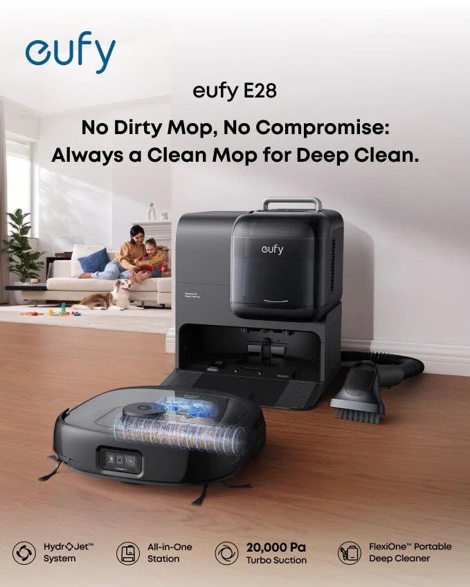 20,000 Pa Turbo Suction: E28 delivers professional-grade deep cleaning on both carpets and floors. It effectively removes even the deepest dust and hair, leaving your home spotless.