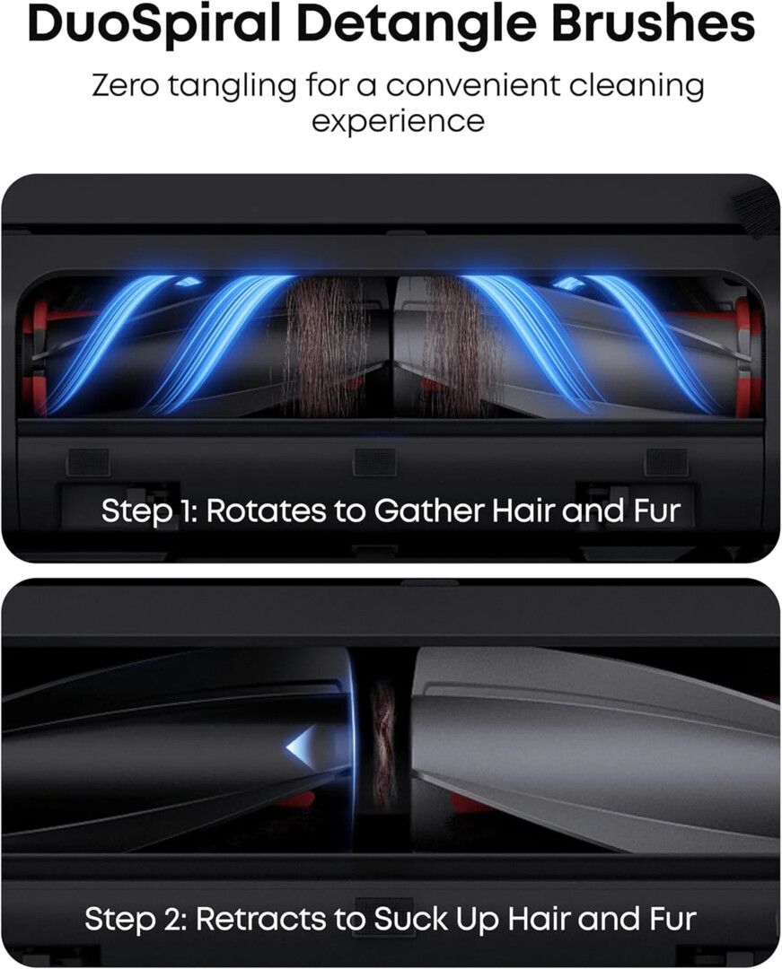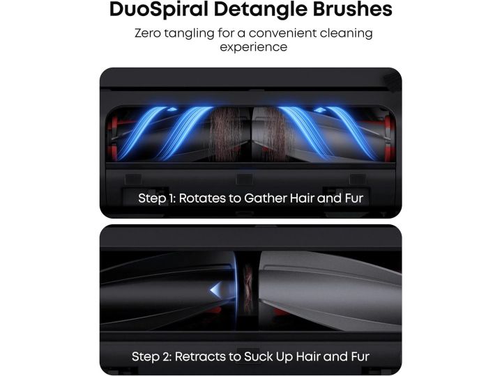 DuoSpiral™ Detangle Brushes: DuoSpiral™ Brushes prevent hair entanglement and reduce maintenance frequency, providing a hassle-free cleaning experience.
