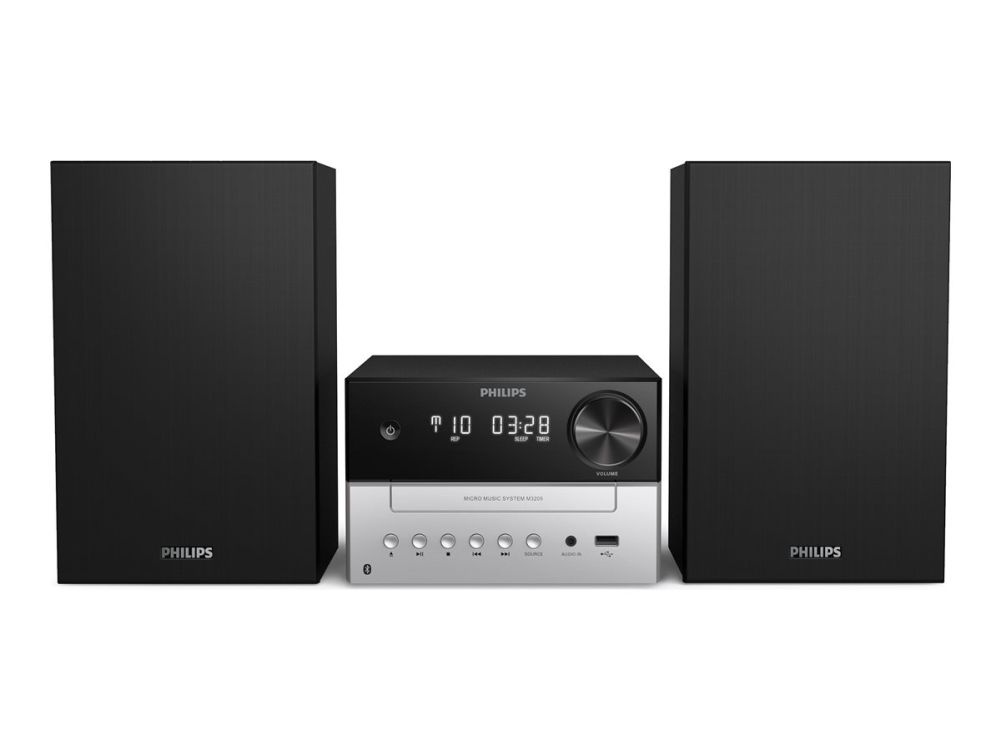 Philips TAM3205M2 mikrosystem gir en engasjerende lydopplevelse med sin robuste toppeffekt på 20 W. Nyt favorittmusikken din i stereomodus, enten fra CD-er, digitale formater eller via Bluetooth-tilkobling. Dette systemet har en innebygd USB-ladeport, som gjør det enkelt å holde enhetene dine ladet mens du nyter musikken. Det har også en brukervennlig digital klokke med alarm og sovetimer, som gjør det praktisk å bruke i alle rom. Opplev allsidigheten med de ulike avspillingsalternativene, inkludert radio- og MP3-funksjonalitet, som passer for lydentusiaster.