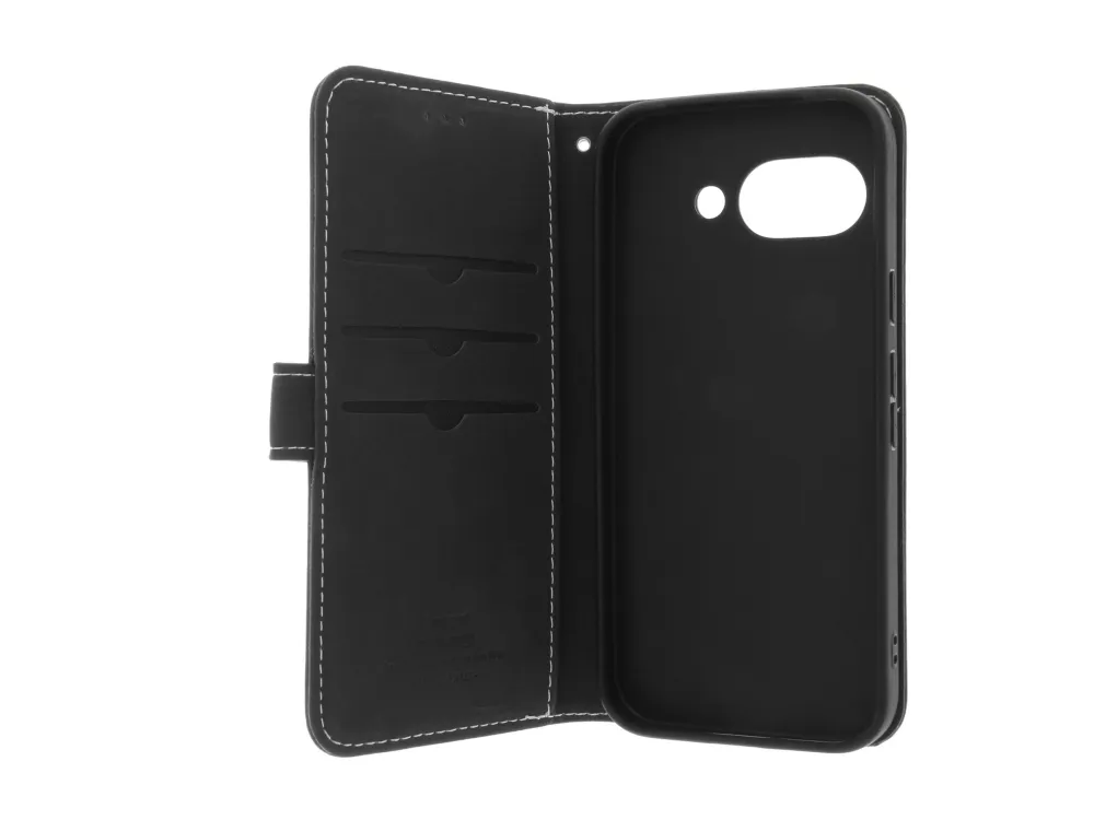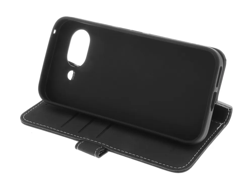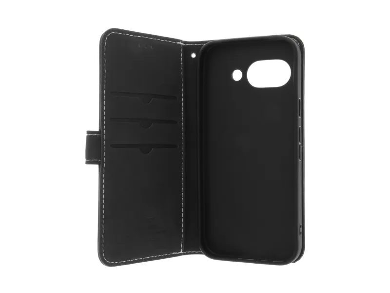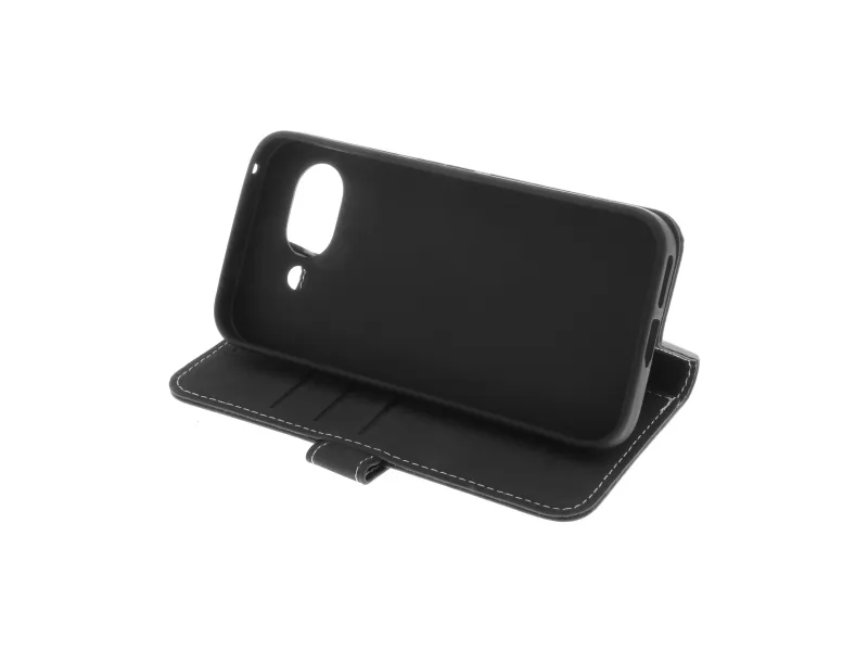 Insmat Exclusive - Flip-deksel for mobiltelefon - ekte skinn, papp+papir, polykarbonat, bomullssøm - svart