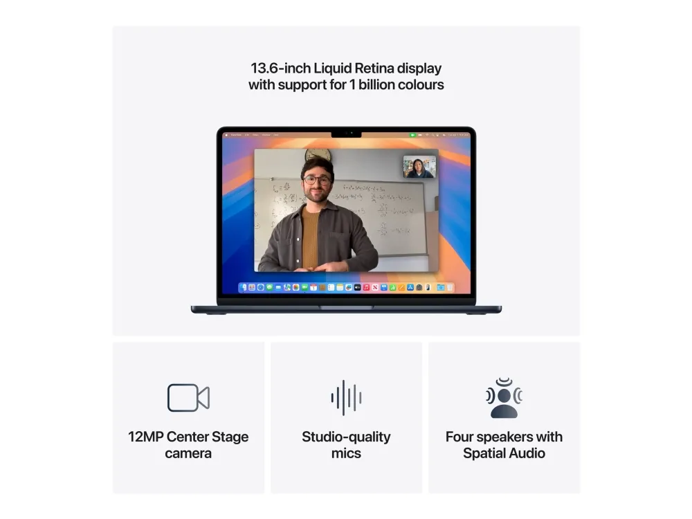 MacBook Air med M4-brikken lar deg fly gjennom jobb og fritid. Med Apple Intelligence [1], en briljant 13-tommers eller 15-tommers Liquid Retina-skjerm, opptil 18 timers batteritid [2] og et slående tynt og lett design, er den bygget for å vare og kan takle det meste, hvor som helst.