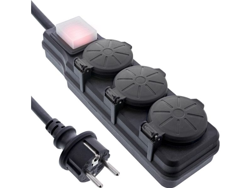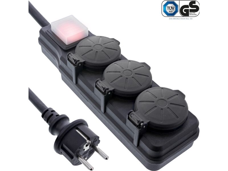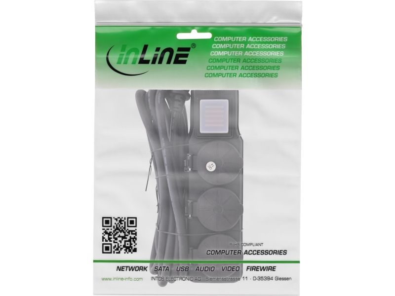 InLine 16493Q, 3 AC-utganger, Type F, 230 V, 3680 W, Sort, Plast