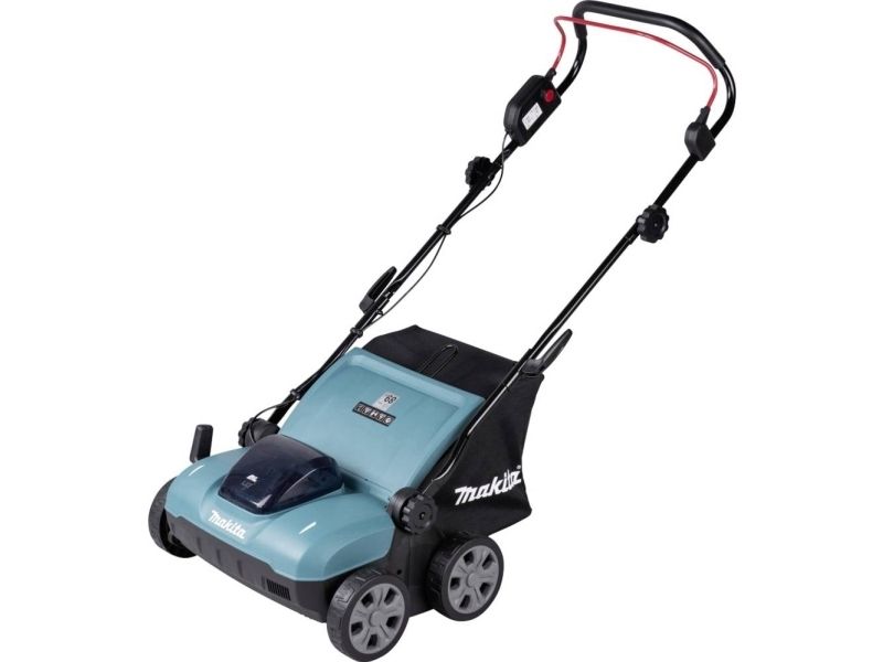 Batteri-vertikalskærer 18V Kraftfuld batteri-vertikalskærer til professionel plænepleje. Arbejdsbredden er 32 cm, arbejdsdybden kan indstilles i fire trin fra -8 til 4 mm. Den store græsopsamlingspose rummer 30 liter. De store 160 mm dia. Hjul giver et godt greb også på glitholdigt underlag. Den har et ergonomisk håndtag, der gør den nem at håndtere og en opsamlingsbeholder, der let kan hænges i. Vertikalskæreren er nem at rengøre og pladsbesparende at opbevare.