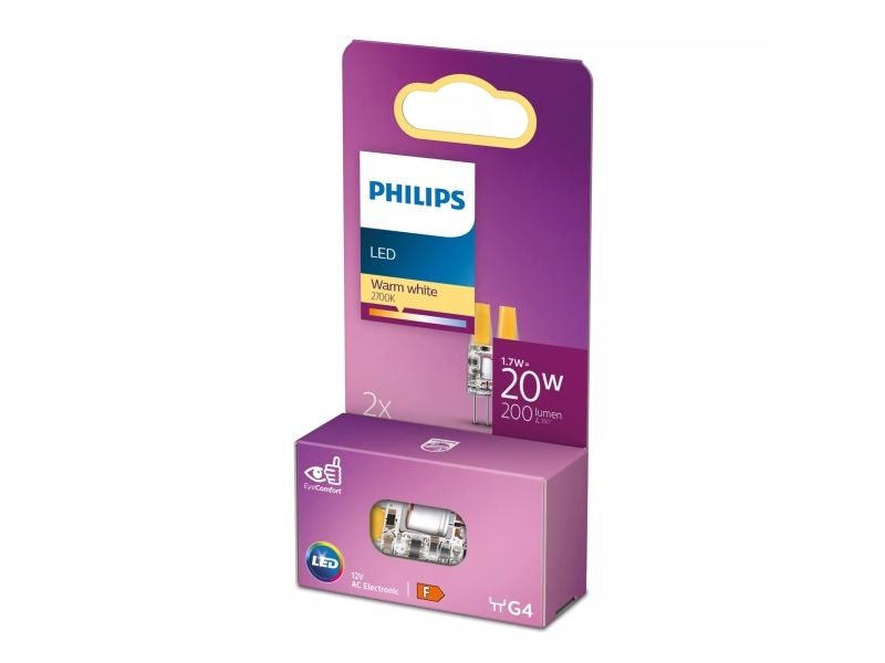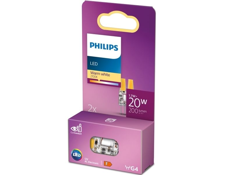 Philips - LED-lyspære - form: kapsel - klar finish - G4 - 1.7 W (ekvivalent 20 W) - klasse F - varmt hvitt lys - 2700 K (en pakke 2)