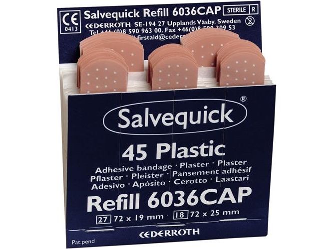 Plaster Salvequick vandafvisende 6036, plast, pakke a 6 stk.