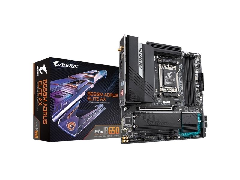 [OUTLET] - Gigabyte B650M AORUS ELITE AX - Hovedkort - micro ATX - Socket AM5 - AMD B650 Chipset - USB 3.2 Gen 2, USB-C 3.2 Gen2, USB 3.2 Gen 1, USB-C 3.2 Gen 2x2 - 2.5 Gigabit LAN, Wi-Fi 6E, Bluetooth - innbygd grafikk (CPU kreves) - High Definition Audio (7,1-kanals)