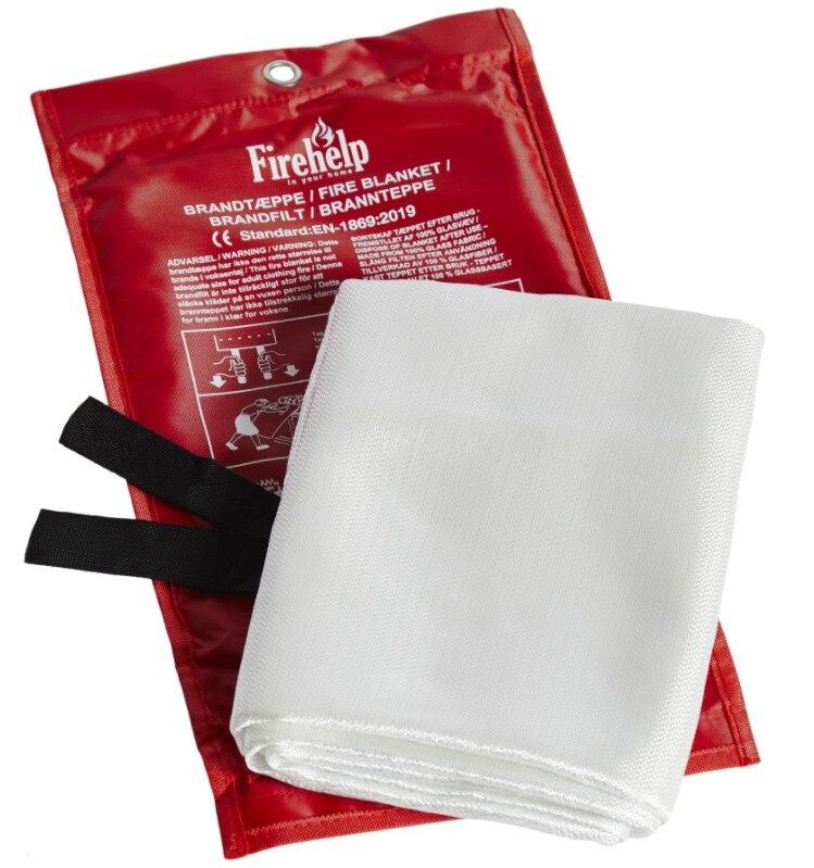 Effektivt brandtæppe, som hurtigt kvæler ilden. 120 x 120 cm. Er ideel til små brande i køkkenet eller lignende, og supplement til en brandslukker