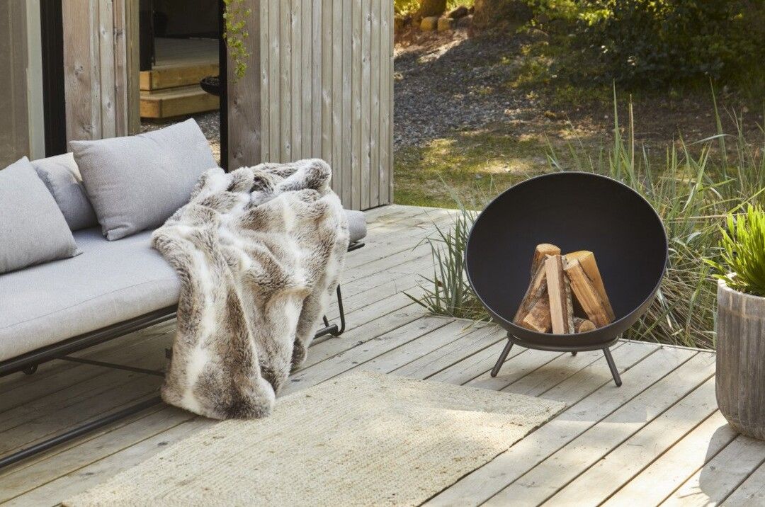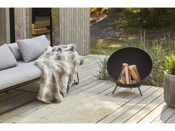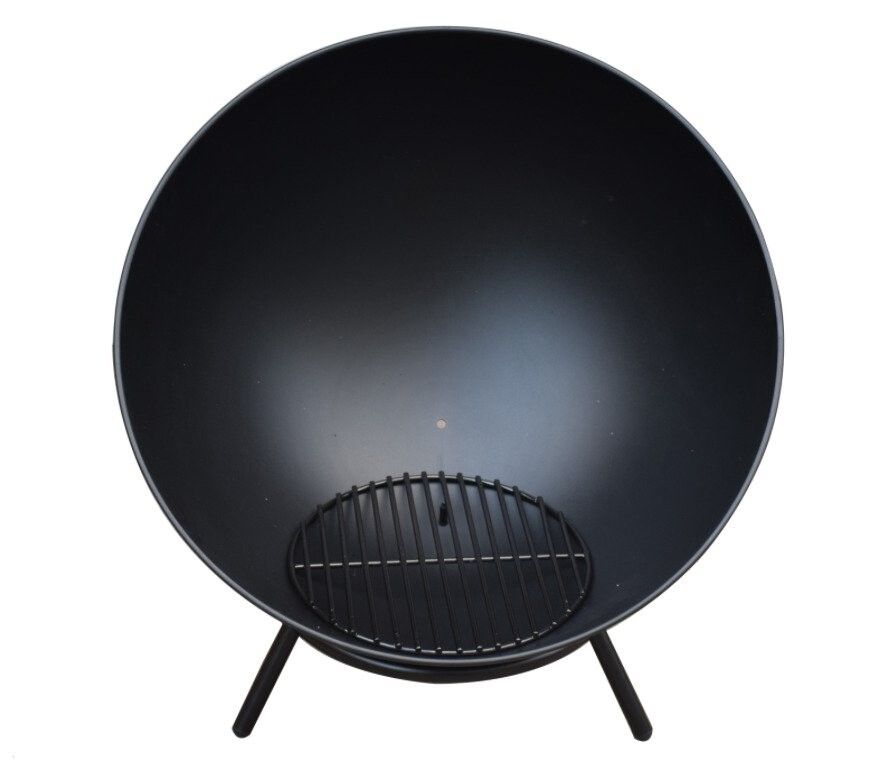 Flytbart bålfad af stål, pulverlakteret sort, Ø60 x 68 cm der spreder varme og skaber hygge til udendørs brug. Fadet placeres på de tre stabile ben og det kan stilles enten vandret, eller let skråt. Bundrist medfølger