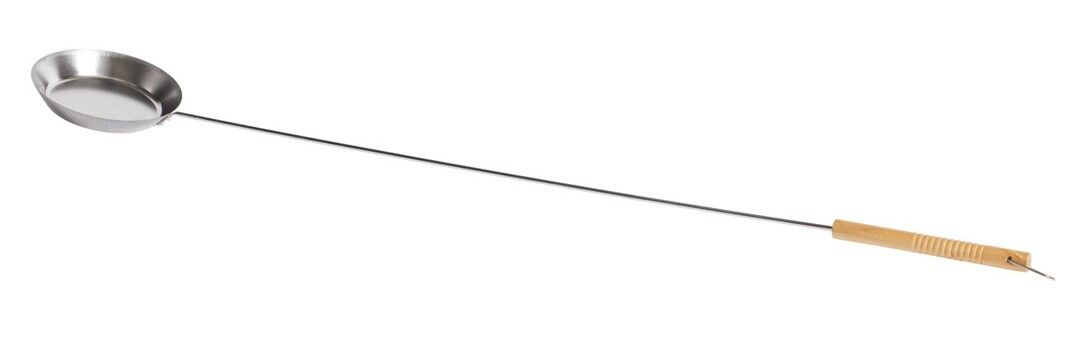 Pande Ø18 cm til at bage pandekager og lignende over bål. 120 cm længde, og let, som gør den nem at håndtere. Håndtag i træ look.
