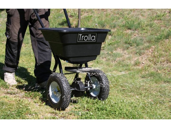 Let håndterbar tallerkenspreder med en kapacitet på 36 liter til spredning på mindre arealer, som med sine godt 10 kg kampvægt er nem at transportere, når den løftes på ladet af en trailer og lignende. Til gødning samt spredning af salt eller sand. Fremdrift med håndkraft, med justerbar spredemængde. Spredebredde op til ca. Ø 3 meter.