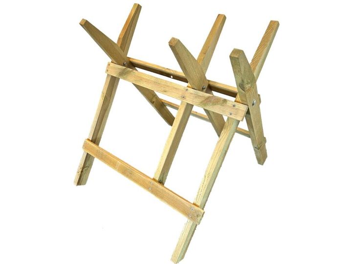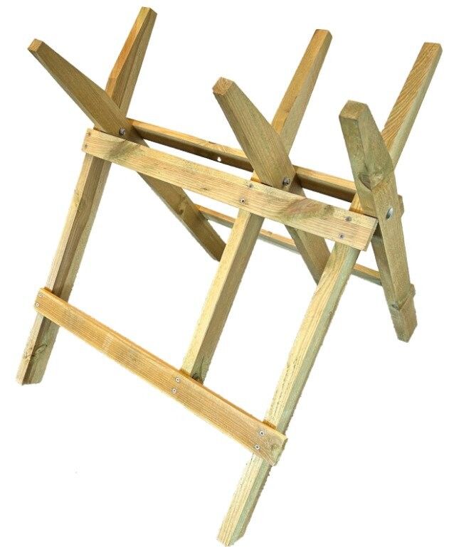 Savbuk i FSC-certificeret træ til fastspænding af træ ved kløvning i mere brændevenlige størrelser.