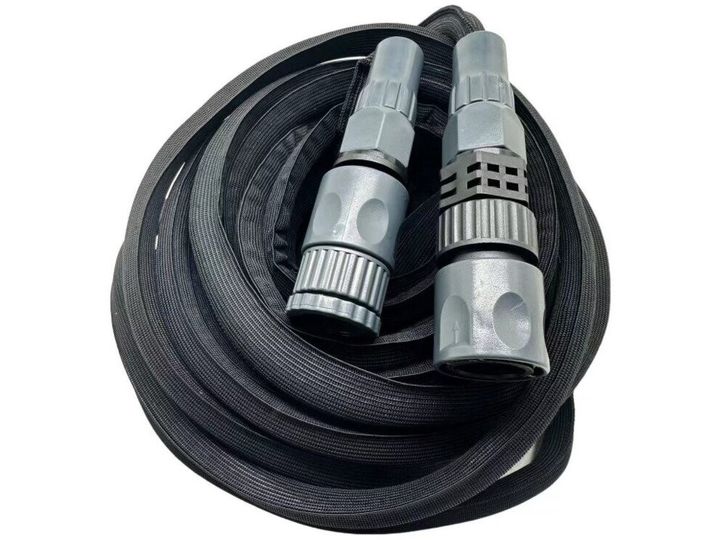 Flex haveslange med sprøjtepistol, inkl. koblinger. Sprøjtepistolen har diverse stråletype-indstillinger. Fleksibel med sine 15-30 meter, som er knap så lang ved opbevaring og kan nå længere i brug. UV-beskyttelse for længere levetid. Ingen knæk og vrid.