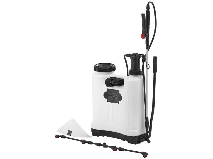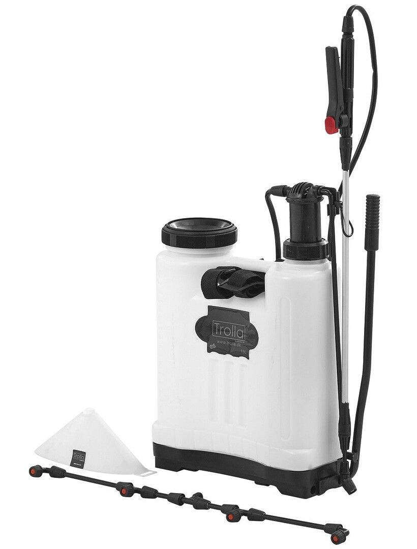 15 Liters rygsprøjte. 3,5 bar. Teleskoplanse 85-130 cm, sprøjtebom og -skærm inklusiv. Der medfølger forskellige ekstra dyser og pakninger. Skulderrem medfølger samt mulighed for skift mellem venstre og højre pumpning.