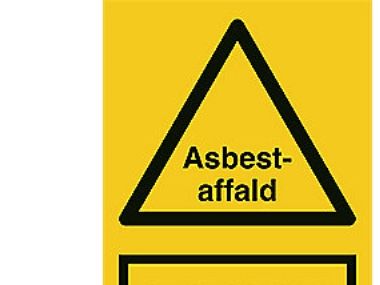Advarselsskilt med tekst ''Asbestaffalt - Sundhedsfarligt at indånde asbeststøv''