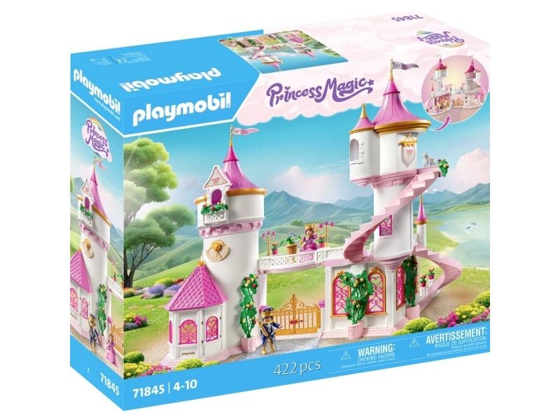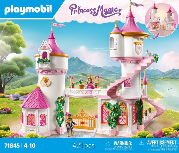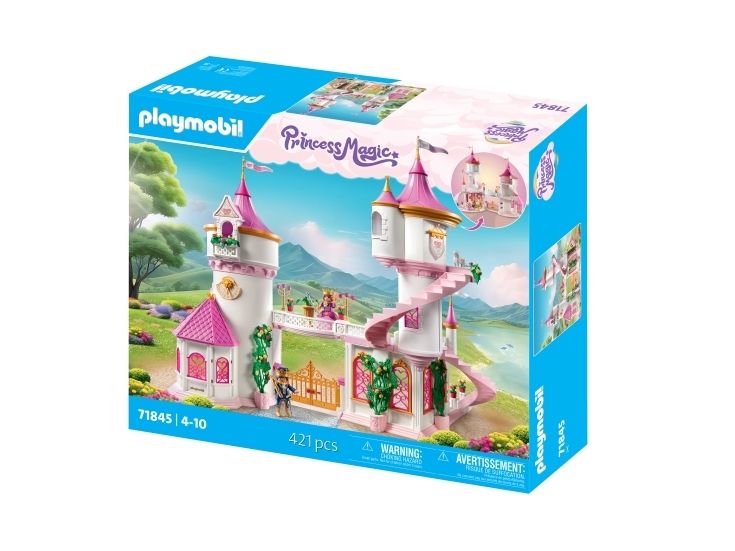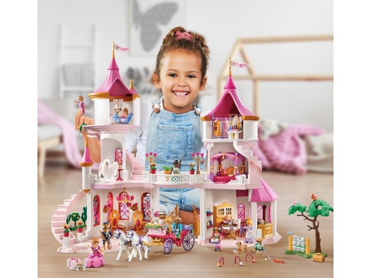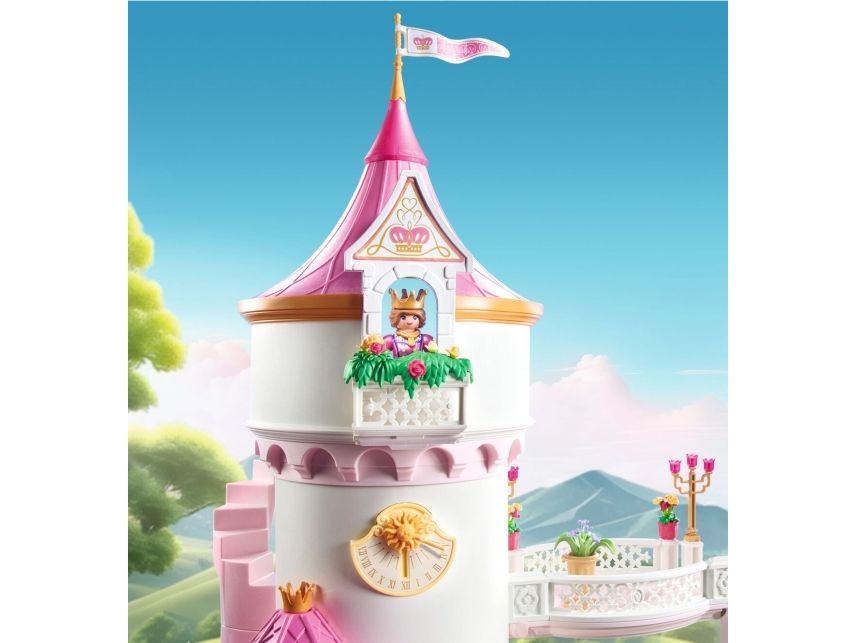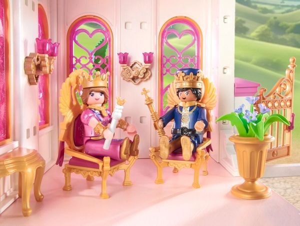 Prinsesseslottet bringer eventyrlige drømme til live! Det fortryllende slot med blomsterudsmykning er det perfekte hjem for det kongelige par og deres perserkat. Se dem dreje yndefuldt rundt på roterende plader under magiske danse. Dette charmerende PLAYMOBIL-sæt indeholder detaljeret tilbehør til timevis af fantasifuld leg. Indret slottet med flere PLAYMOBIL-sæt for endnu mere kongelig sjov!