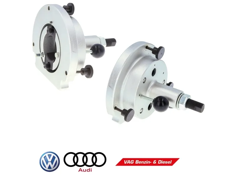 Krumtapakseltætningsring-monteringsanordning til VAG benzin- og dieselmotorer • Til montering af drevet fjerner radialtætningsringe • Et forsøg på montering af tætningsring uden dette værktøj kan føre til utætheder, ødelæggelse af den nye tætningsring og dårligt motorløb • Egnet til VAG-køretøjer Volkswagen Golf, Touran og Audi A3, A4 1,4i Turbo, 1.4 & 1.6 benzin direkte indsprøjtning, 1.9, 2.0 SDI, 2.0 Common Rail Diesel-motorer • Anvendes som OEM T10134