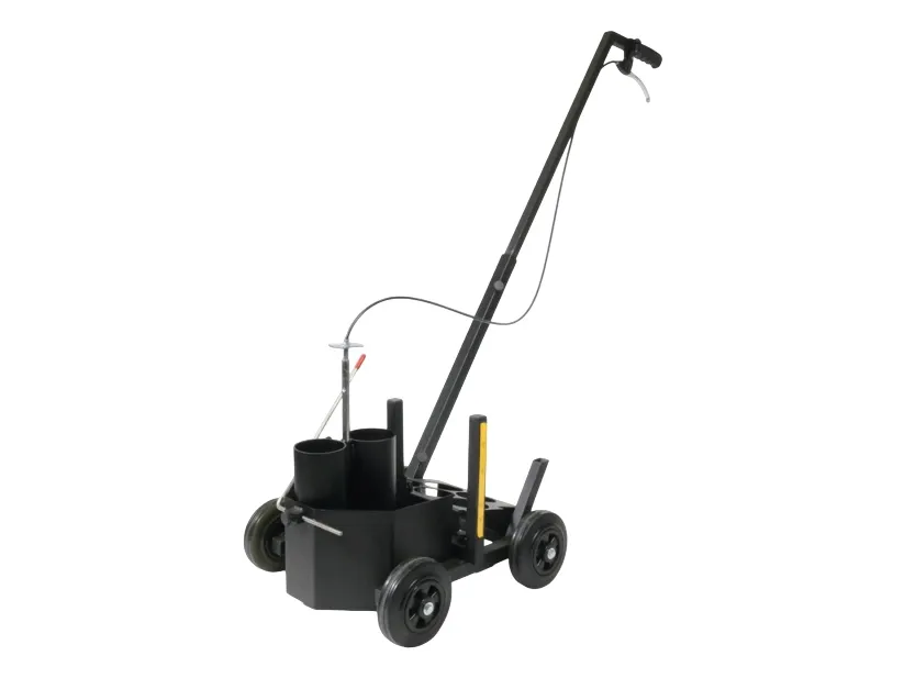 markeringsvogn DURALINE® EasyTrack sort 114101 1st Markeringsvogn DURALINE® EasyTrack Markeringsvogn til hurtig og præcis påføring af identifikationsmærker Anvendelse til markeringer på lager, produktionsanlæg eller parkeringspladser Trinløs indstilling af stregbredden fra 4 - 10 cm Anvendelse af to dåser samtidig for bedre farvedækning mulig Højdejusterbart håndtag til venstre- og højrehåndede Opbevaring af op til 5 dåser Passer til 500 ml og 750 ml dåser Mål uden greb: (B x H x D) 380 x 350 x 440 mm Mål med gribestang: (B x H x D) 380 x 1000 x 1100 mm