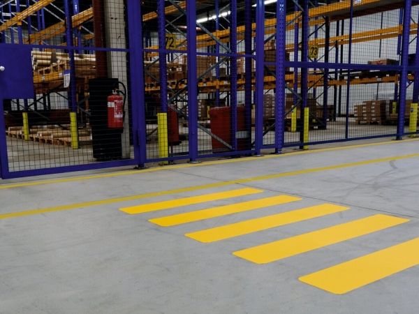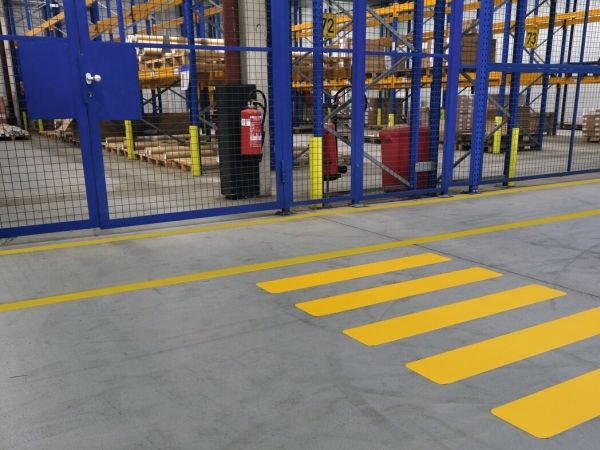 Selvklæbende gulvmarkering som zebrastriber indendørs