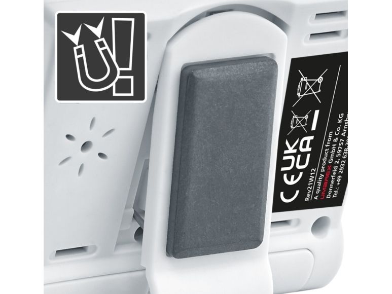 Det digitale hygrometer registrerer nøjagtigt den omgivende temperatur og den relative luftfugtighed. Apparatet er ideelt til langtidsovervågning af indeklimaet til forebyggelse af fugtskader. Efter ønske kan den mindste og den største måleværdi vises. Den praktiske stander med hæftemagneter giver mulighed for opstilling som bordapparat og hæftning på metalliske overflader. En stor del af huset består af genbrugt materiale og yder et værdifuldt bidrag til bæredygtighed.
