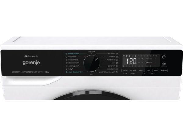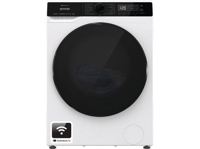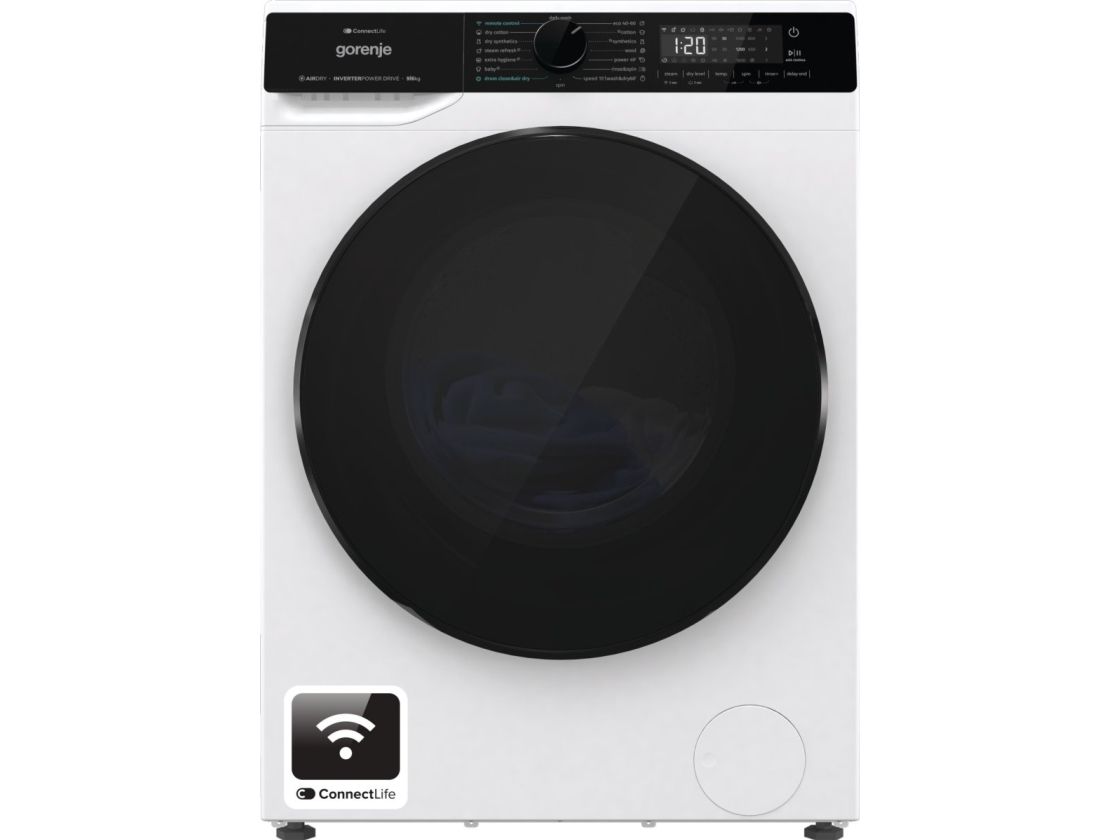 The Gorenje G600 WD2PA964ADW washer/dryer combines functionality and modern design to enhance laundry efficiency. With a front-loading capacity of 9 kg, this model offers 16 diverse washing and drying programs tailored for various fabrics, ensuring optimal care and cleanliness. The drum features Raindrop technology and a unique steam wash option for deeper cleaning results, while the Jet Wash system minimizes wash times without sacrificing performance. Its advanced IoT compatibility allows seamless connectivity via Wi-Fi, enabling users to control and monitor laundry cycles through the Connect Life app, providing convenience and flexibility. This washer/dryer operates efficiently, using only 3.07 kWh per drying cycle. Equipped with safety features such as a child security lock and a water overflow protection system, it prioritizes household safety. The adjustable feet and the 140-degree door opening enhance usability, making loading and unloading easier. With additional features like a time remaining indicator and 24-hour auto shut-off delay, this washer/dryer is a smart choice for contemporary homes looking for efficiency and dependability.