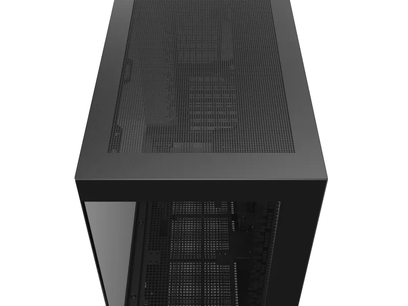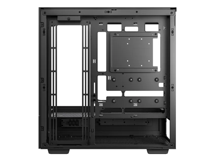 Støttehovedkort for baktilkobling, GPU-støttebrakett, cable management system (36.5 mm clearance), bunnstøvfilter, rear semi-glass panel