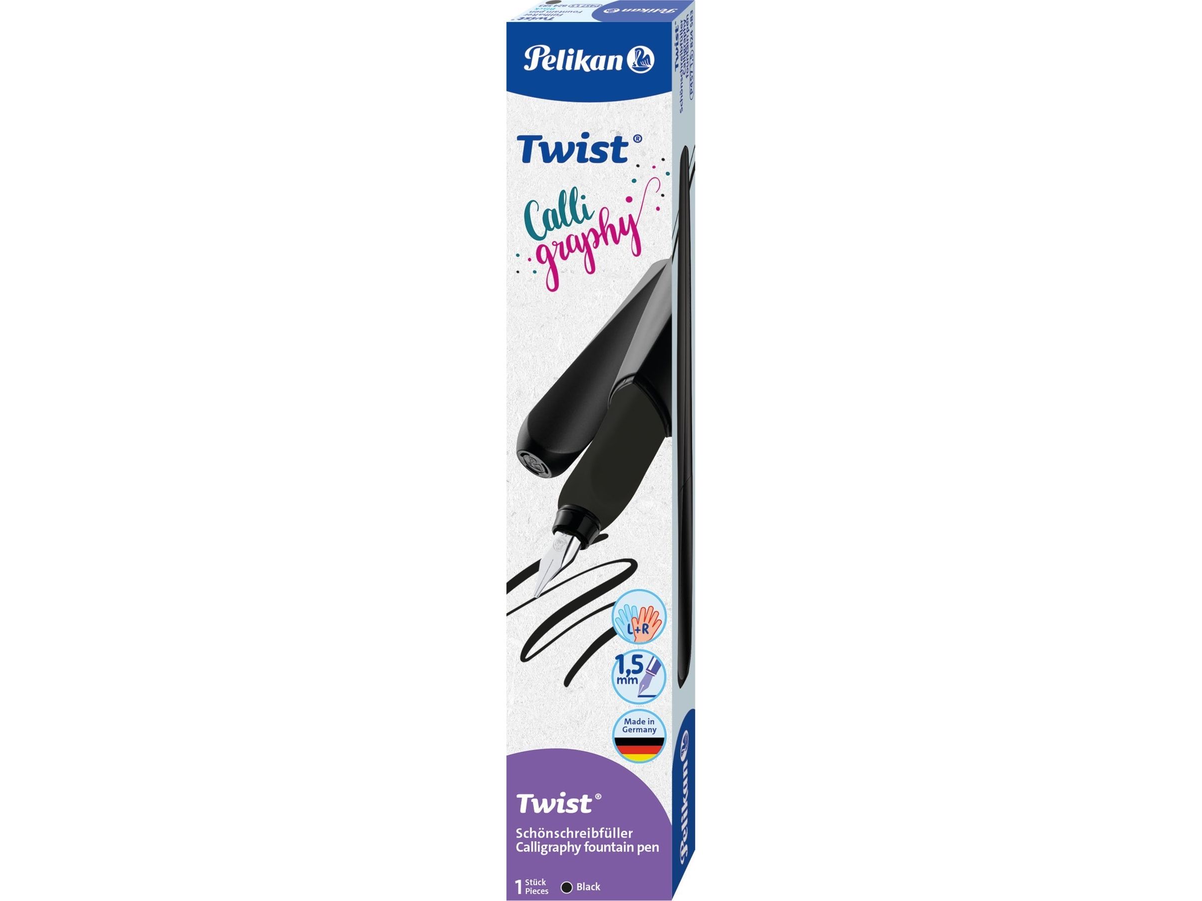 Pelikan Twist Calligraphy fyllepenn for høyre- og venstrehendte - Svart - Spiss 1,5 mm - Sammenleggbar eske (824583)