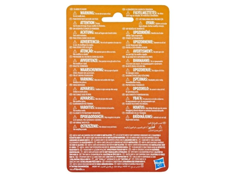 Nerf-merket forbedrer leken med høytytende dartblastere og Nerf N1-darter i Nerf N-serien! Du har ferdighetene til en Nerf-spiller. Nå kan du få blastere og darter som gir et overtak i lek inne og ute. Nerf-merket, skaperne av skumdarter, lanserer den neste evolusjonen i avfyring av N1-skumdarter i Nerf N1-serien. De skytes med EKSTREM NØYAKTIGHET, HASTIGHET OG AVSTAND! Med offisielle Nerf N1-skumdarter kan du fyre av darter støtvis i vennlige Nerf-kamper sammen med familie og venner. Fyr løs dartene og se dem fly langt med utmerket nøyaktighet for bedre treffsikkerhet i kamper. Denne pakken inneholder 20 Nerf N1-darter som kun er kompatibel med blastere i Nerf N-serien. Briller anbefales (ikke inkludert). Blasterne selges separat. Tilgjengelighet varierer. NERF og HASBRO og alle relaterte varemerker og logoer er varemerker som tilhører Hasbro, Inc.
