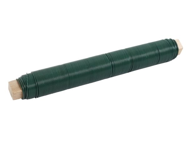 Bindetråden er grøn, så den falder diskret og naturligt i med planter og blomster. Rullet op på træpind, så den ikke filtrer ved afrulning.