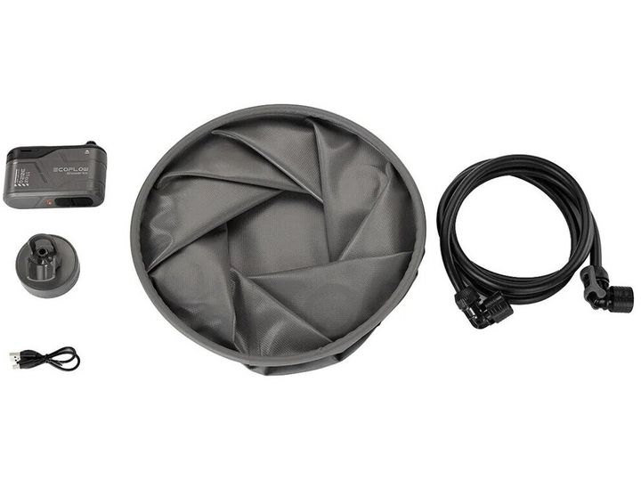 The EcoFlow Shower Kit is a versatile shower kit made for camping, traveling and for people who are often away from home. The kit includes a lightweight, collapsible bucket, shower pump, hose with tips, shower head and power cord. The compact design and light weight make the set easy to carry and ideal for any field conditions. What's more, the shower is compatible with portable air conditioners from the EcoFlow WAVE series - allowing you to use the condensed water, for example, to wash your hands, dishes or car in outdoor conditions.