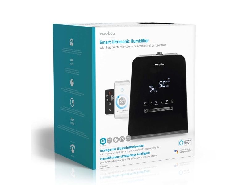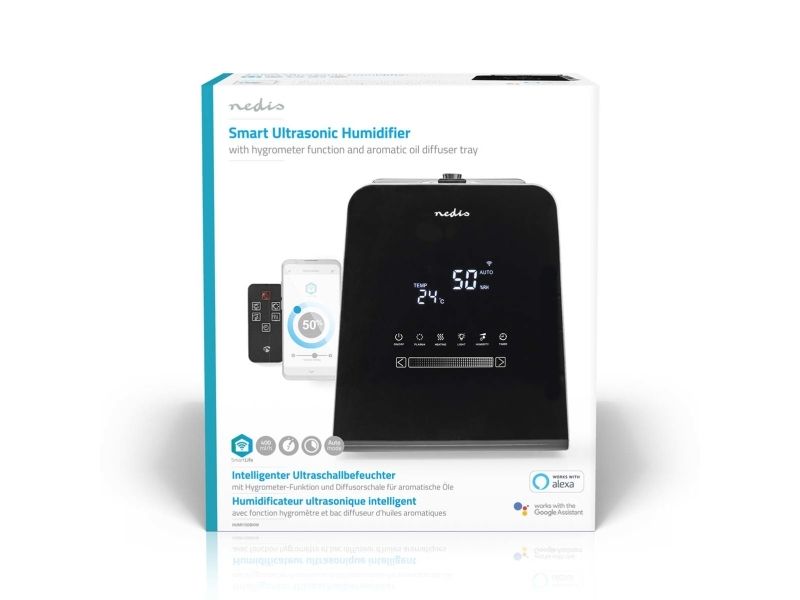 Control the environment and automatically maintain a healthy, consistent atmosphere in the room with this self-adjusting Smart humidifier with plasma cluster function. The Nedis SmartLife humidifier offers automatic humidity control thanks to the hygrometer and ultrasonic technology, which can measure the moisture in the air and adjust operations accordingly. Simply connect the unit to your home's Wi-Fi. In addition, the humidifier has support for voice control using Alexa and Google Assistant.