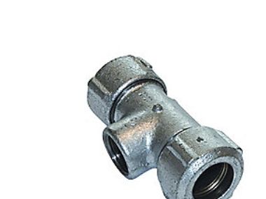 Primofit T-stk. 1 med rg.mf. - galv. for stålrør. med indv. gevind på afgrening