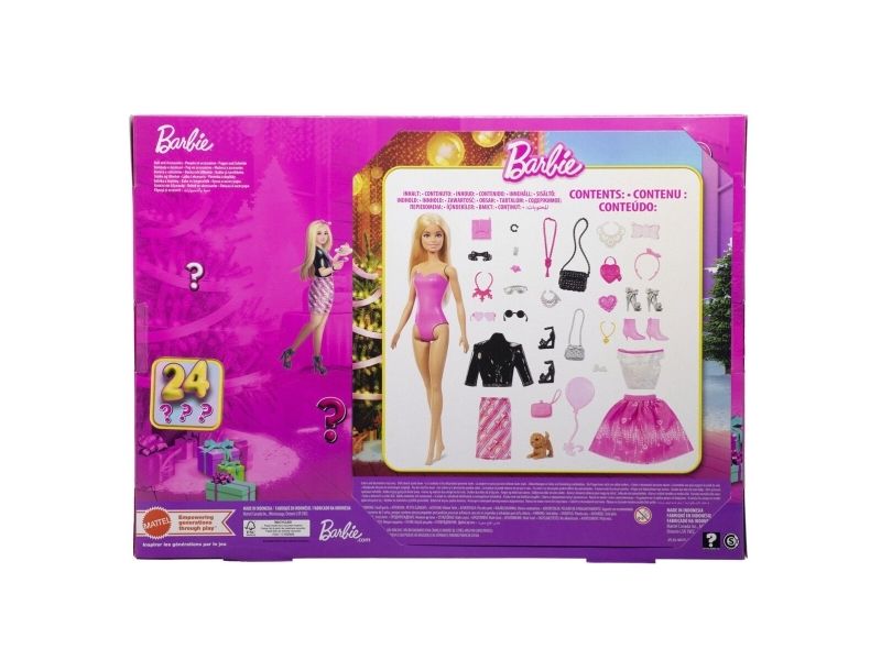 I denne Barbie Fashionista Adventskalenderen har Barbie alt hun trenger for mote fra dag til natt! Med stilige klær og tilbehør til enhver anledning har Barbie uendelige kombinasjoner av antrekk å velge mellom. Kalenderen inneholder en dukke og 24+ tilbehør.