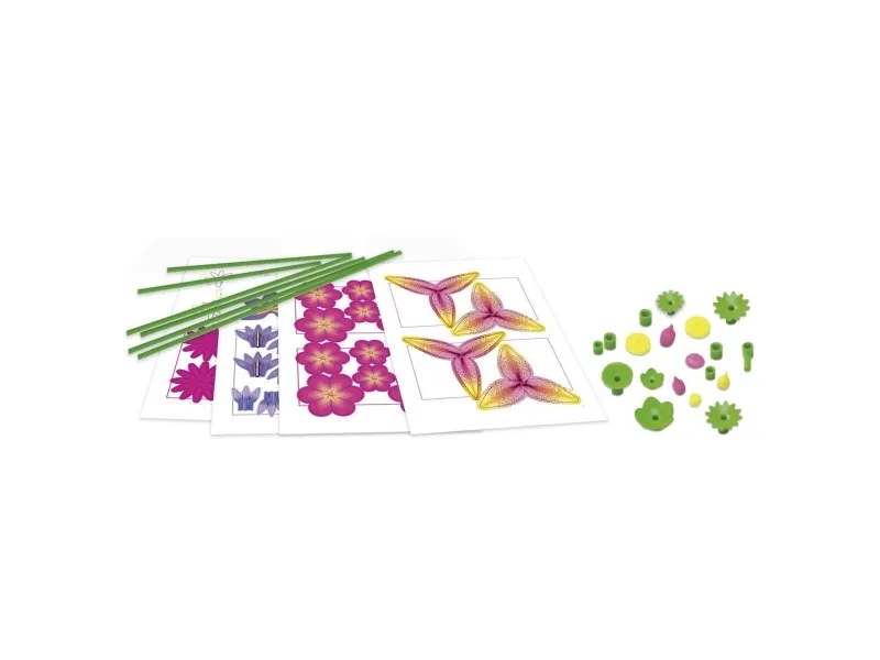 The box includes all the necessary elements to create your Orchid from Educa's new floral series. The box includes: Die-cut cardboard, pre-cut paper sheets printed on both sides, plastic tube cut to different sizes, green plastic grill, yellow plastic grill.