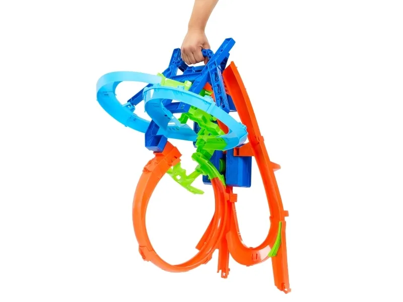 Race, stunt and crash with this Hot Wheels track set that includes a motorized booster and folds for easy storage. Drop in the included Hot Wheels toy car, and it immediately launches into a jump-stunt and loop, followed by another jump and curves before doing it again. Flip the diverter to race off to other challenges. Amp up the thrills by adding more 1:64 scale cars to see how long before there's a mid-air crash. (Additional cars sold separately.) The set has a handle and foldable storage for portability. Colours and decorations may vary.Hot Wheels Action Stunt Tracks Mid-Air Crash Playset with 1:64 Scale Die-Cast Toy Car & Motorized Booster. Product type: Vehicle & track set, Recommended age (min): 5 yr(s), Recommended age (max): 99 yr(s). Battery type: D, Number of batteries supported: 4. Material: Plastic, Product colour: Multicolour