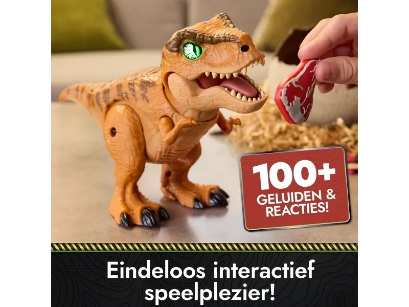 Hatch and Train your own baby dinosaur with the Primal Hatch T-Rex! Bring your dino to life as you watch it hatch for the very first time! This dino toy for boys and girls lets you watch your baby T-Rex hatch, and then decide whether it grows into a friend, or a fierce predator! With articulated features, more than 100 sounds and reactions and so interactive play modes, the Primal Hatch T-Rex is bound to keep your little Jurassic Park fan entertained for hours of fun! To start, hatch the T-Rex by tapping on the egg repeatedly, then watch in amazement as the egg begins to crack, and your baby dinosaur emerges through the gooey membrane of its egg! Use the clicker and food accessories to train the fierce dino into becoming a friend, or watch it grow into a dangerous predator! You decide what your baby dinosaur becomes! The Primal Hatch T-Rex is a fantastic addition to your kids collection of cool toys, dinosaur toys and Jurassic toys! Add it to your wish list for holiday gifts, holiday toys, or birthday toys for boys and girls aged 5 & up!