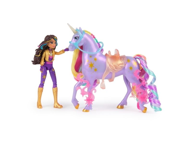 Inkl. 12 cm enhjørning & 11 cm dukke med 7 bevegelige ledd.