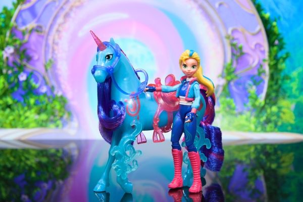 Inkl. 12 cm enhjørning & 11 cm dukke med 7 bevegelige ledd.