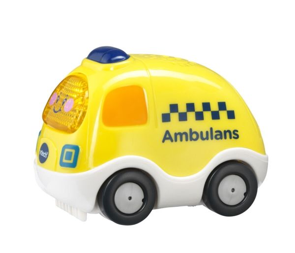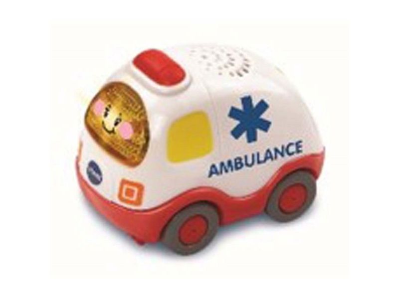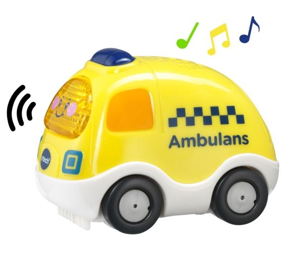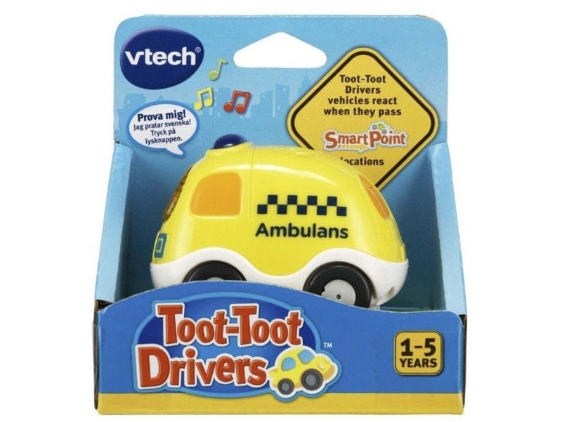 Kom til unnsetning med Toot! Toot! Ambulanse fra VTech®. Denne elektroniske bilen er som skapt for små hender, og den underholder barnet med en lysende knapp som aktiverer fraser og lyder. Denne ambisiøse ambulansen reagerer på SmartPoint®-lokasjoner på Toot! Toot!-lekesett (selges separat) med morsomme reaksjoner, lydeffekter, lys og musikk. Hjelp og moro er på vei!