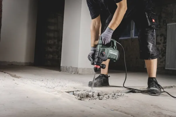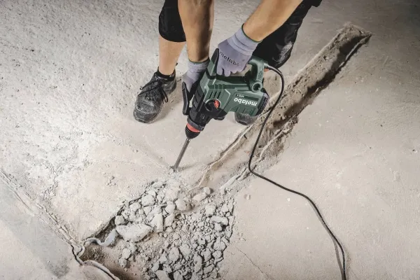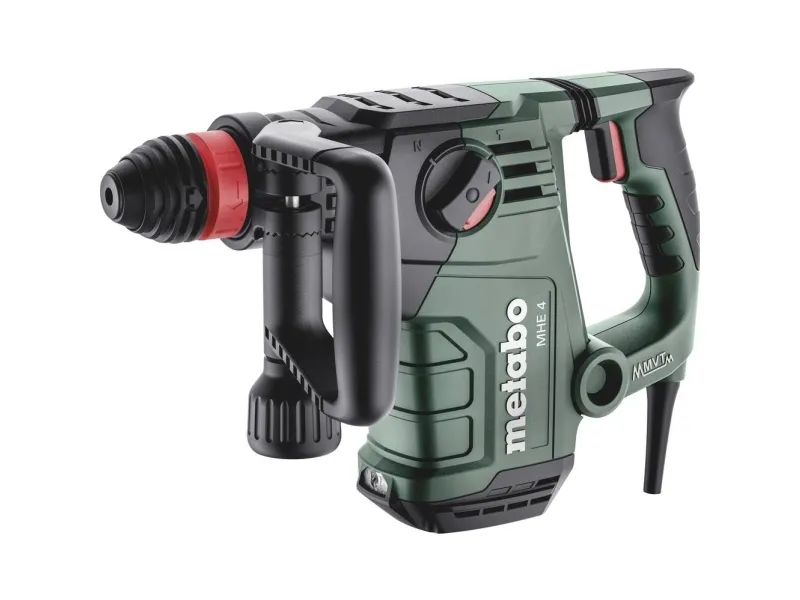MHE 4 mejselhammer Den bedste SDS-plus-mejselhammer fra Metabo til krævende arbejde i beton med høj slibeydelse. Perfekt ergonomi takket være håndlavet tyngdepunkt og optimeret grebskontur. Metabo VibraTech (MVT): Integreret dæmpningssystem til reduktion af vibrationer til beskyttelse af sundheden. Let tilgængelig låsekontakt til mejsling ved kontinuerlig drift. Valgfri reduktion af slagenergi til arbejde i bløde materialer. Sikring mod genstart: Forhindrer utilsigtet start efter strømafbrydelse. Overbelastningssikring: beskytter motoren mod overophedning. Led-arbejdslys for optimal sigt på mejslet. Kulbørstedisplay. Variabelt bøjlegreb kan drejes 360° og kan indstilles i vinkel for en optimal arbejdsposition.