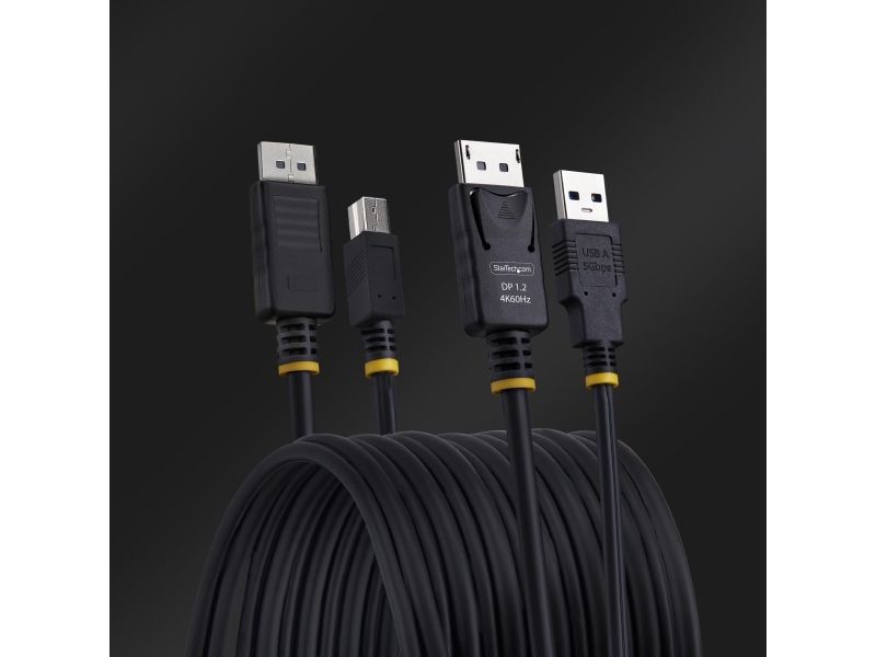 The 10ft (3m) DisplayPort and USB 5Gbps KVM Cable from StarTech.com is designed to streamline connectivity between your keyboard, video, and mouse for a seamless user experience. With support for up to 4K resolution at 60Hz and HDR10, this cable ensures vibrant and crisp video quality, making it suitable for high-performance setups. Made of durable thermoplastic elastomer (TPE) with nickel-plated connectors, this cable provides reliable performance and long-lasting use.