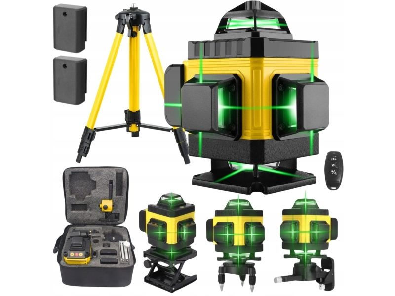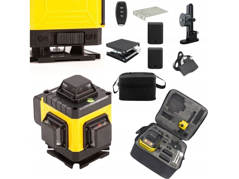 Extralink Rinkinys POZIOMICA LASEROWA KRZYOWA PASZCZYZNOWA LASER 4D ZE STATYWEM, 16 m, 0,1 mm/m, 1°, Roterende laservater, Sort, Gult, Akrylonitril-butadien-styren (ABS)