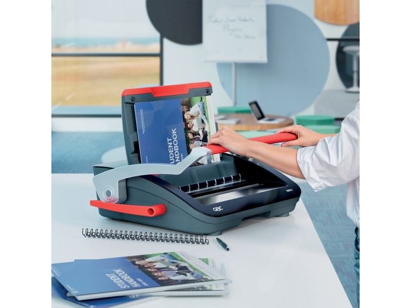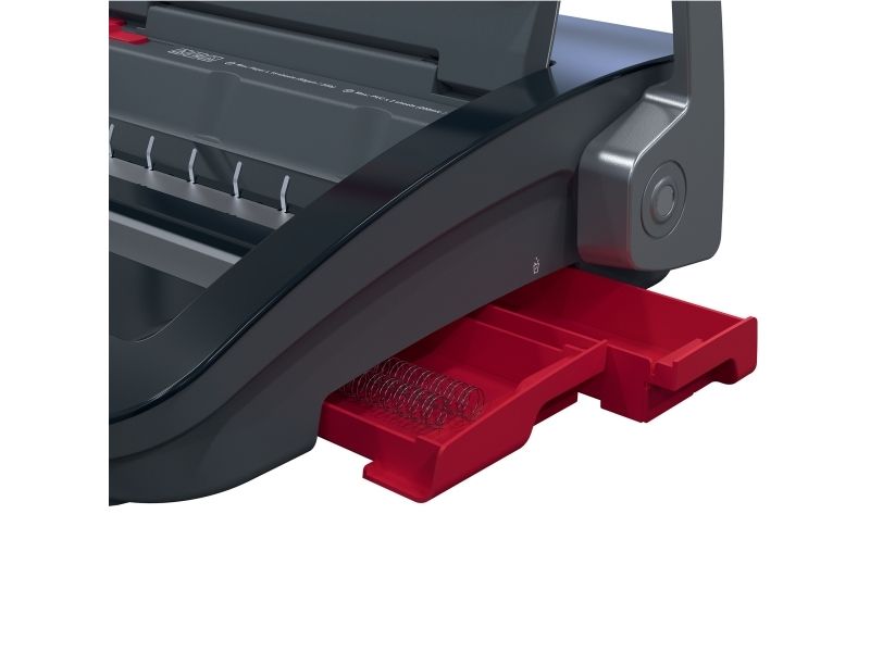 WireBind® WB15 er konstrueret til holdbarhed og brugervenlighed i travle kontorer og uddannelsesmiljøer med hyppige indbindingsbehov. Denne manuelle indbindingsmaskine huller op til 15 ark (80 g) papir og indbinder op til 125 ark ad gangen med en 14 mm wire. For ekstra bekvemmelighed har den en udstansningsbakke for nem bortskaffelse af papiraffald og et praktisk opbevaringsrum. Forbedrer din dokumenthåndtering med WireBind® WB15 – hvor funktionalitet møder stil. Sort og sølv farve. - Indbinder op til 125 A5/A4-ark (80g) ad gangen ved hjælp af en 14 mm wire. - Huller op til 15 ark ad gangen (80 g) - Alsidig indbinding: Indbind nemt A5-dokumenter i liggende format med A5-wire indbindingsrygge og A4-dokumenter i liggende format med A4-wire indbindingsrygge. - Manuelt dobbelt håndtag for en jævn indbindingsoplevelse med minimal indsats. - Sidemargenjustering for præcis justering og ensartede indbindingsresultater. - Fast margindybde for ensartet indbinding af høj kvalitet. - Skridsikre gummifødder for stabil og sikker placering. - Praktisk udstandsningsbakke og et indbygget opbevaringsrum for ekstra organisering. - Let og kompakt design for nem transport og praktisk opbevaring.