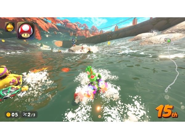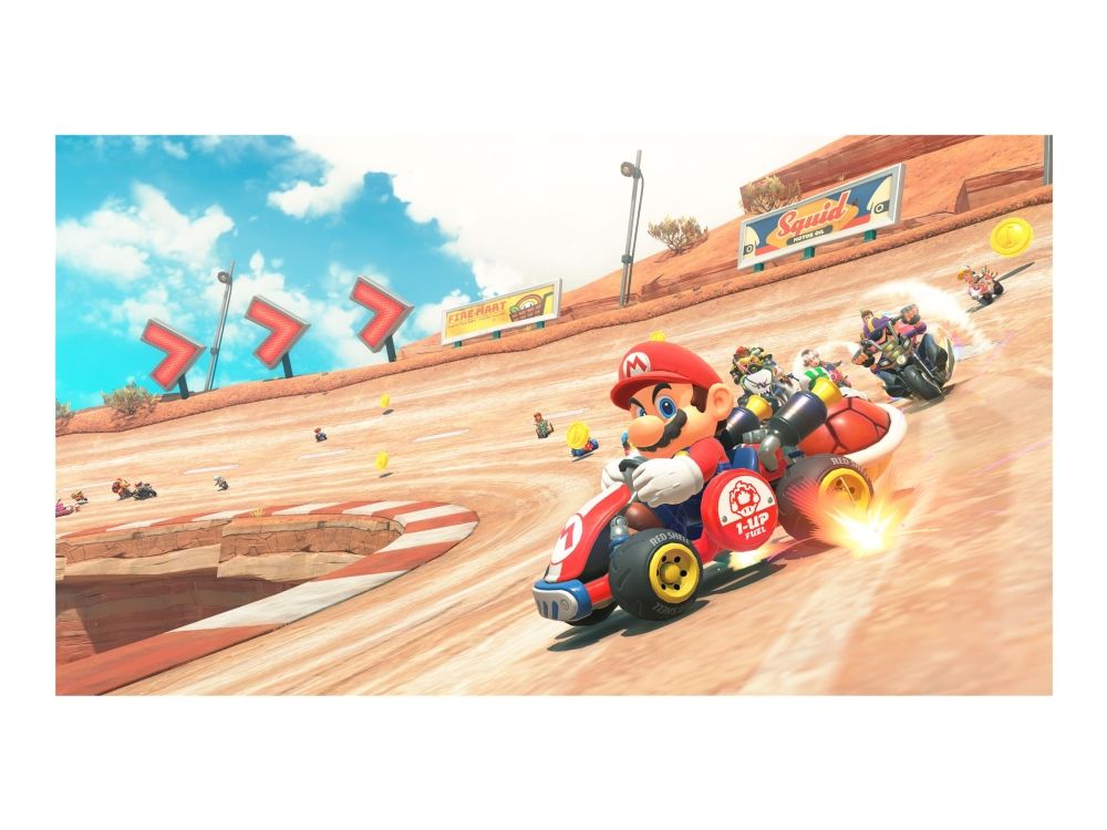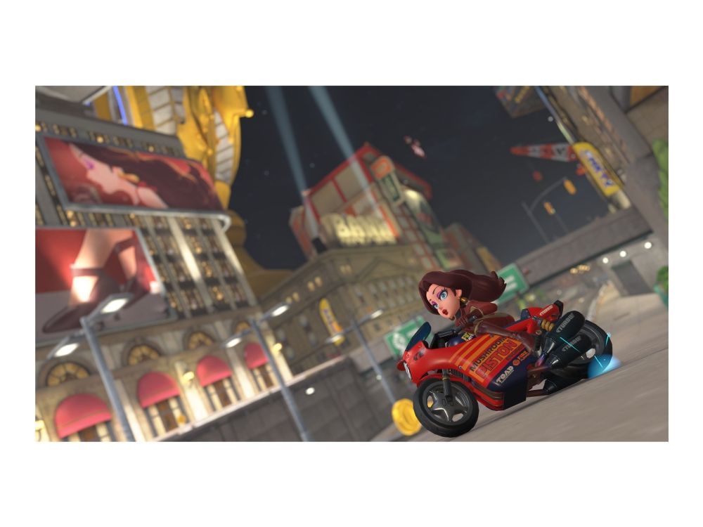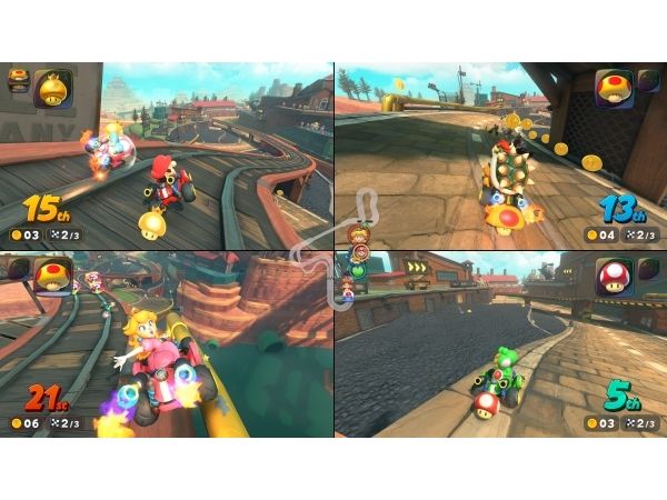 Kør problemfrit på tværs af forbundne baner, der leverer Mario Kart-racing som aldrig før. 24 spillere kan deltage i et løb. Deltag i den nye Knockout Tour mode, hvor du kører gennem baner og checkpoints, der ligger lige efter hinanden, uden pitstop undervejs. Hvis en spiller ikke når frem til hvert checkpoint med en høj nok placering, bliver vedkommende elimineret. Og i Free Roam er det muligt at forlade racerbanen og køre i den retning, du ønsker, udforske områder, der vækker din interesse, og tage nogle billeder på naturskønne steder sammen med en gruppe venner.