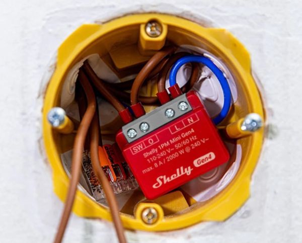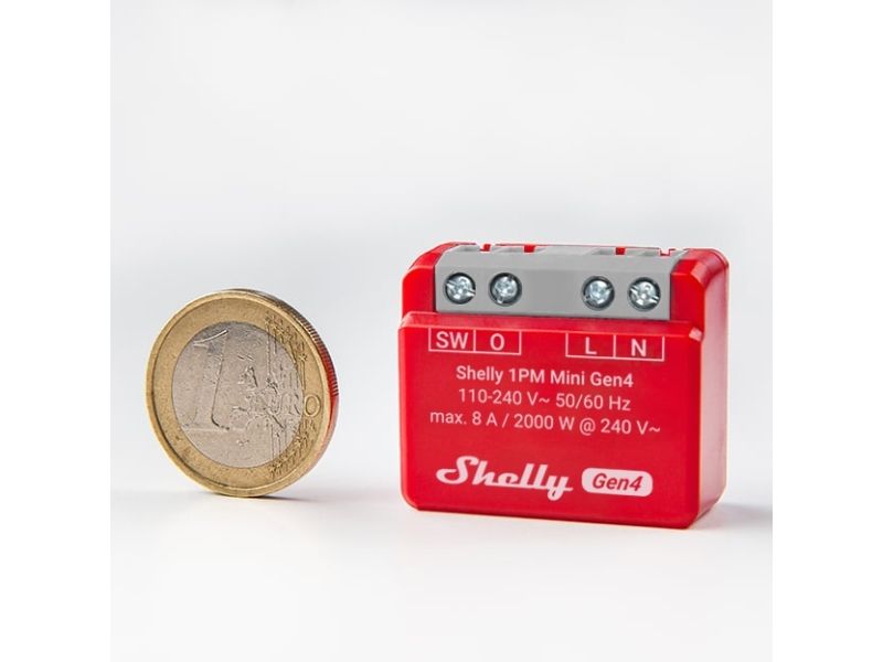 En kompakt smart switch med energimåling til styring af lys og små elektriske apparater op til 8 A. Udstyret med Shelly-chippen og understøtter multiprotokolforbindelse: Wi-Fi, Zigbee, Bluetooth og Matter.
