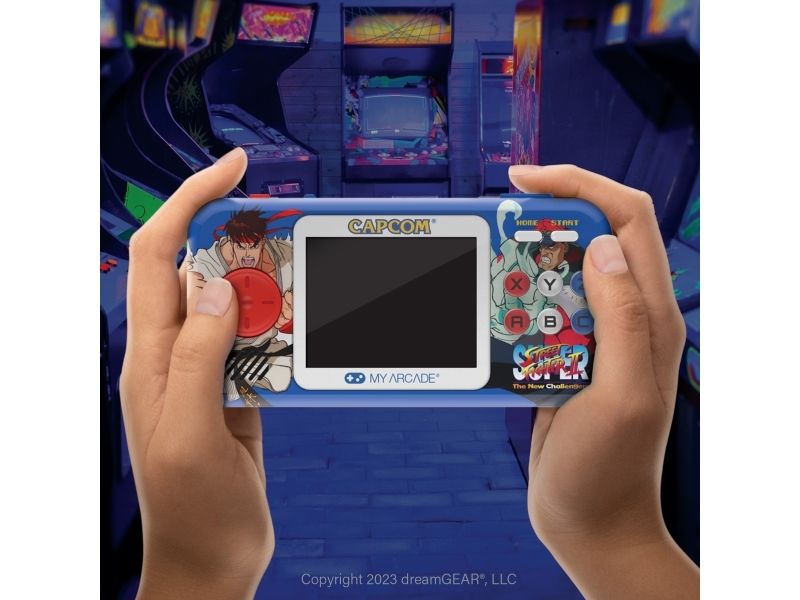 Super Street Fighter II The New Challengers is the ultimate fighting game experience! With four new characters, four new stages, and enhanced gameplay, this is the definitive version of Street Fighter II. With its iconic characters, fluid animation, and enhanced gameplay with new moves and combos, Super Street Fighter II The New Challengers is a must-have for any fighting game fan.My Arcade Super Street Fighter II Pocket Player Pro. Product colour: Multicolour, Gaming control function buttons: D-pad, Home button, Start button. Display diagonal: 6.98 cm (2.75"). Headphone connectivity: 3.5 mm. Power source type: USB/Battery, Battery type: AA, Battery technology: Alkaline