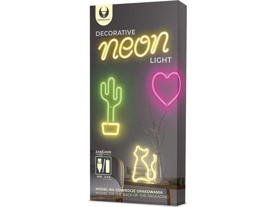 Thanks to LED technology, neons consume relatively little electricity. The device can be powered by 3 AA batteries or a USB plug. Neon lights are available in many shapes and colors, including white, orange, green, red and pink. The device is made of white plastic. The dimensions depend on the type of pattern.