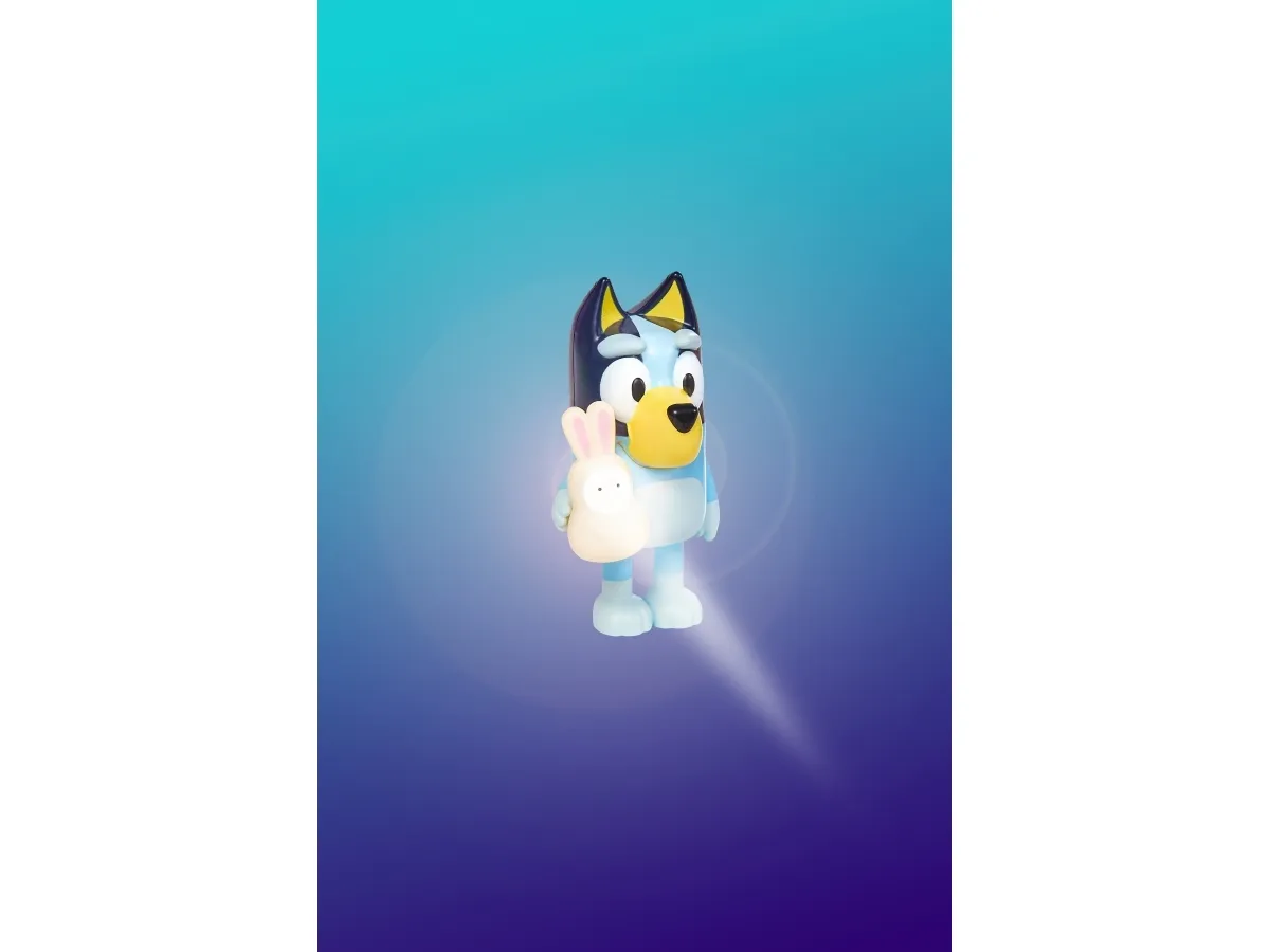 Med Bluey GoGlow Dream 3 i 1 Natlampe hjælper Bluey dig med at sende dit barn til Drømmeland! Bluey 3 i 1 Natlampe, Lygte og Sleep Timer, er perfekt til sengetid, historietid og legetid for børn.
